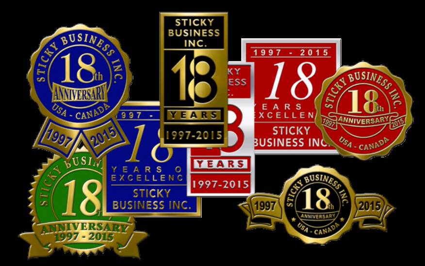 Every business owner knows that attractive branding, high quality promotional materials, and clever ideas are key when it comes to advertising your company or product. Sticky Business Inc. can help by printing custom business stickers, labels, decals, pewter labels, domed decals, magnets, embossed foil seals, anniversary seals, and other promotional goods.