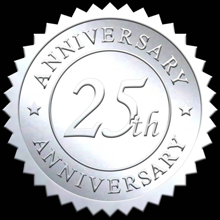 Our pre-packaged 50 pack of stock 1.5" starburst SILVER embossed foil 25th Anniversary Seals are the perfect way to honor this special occasion.