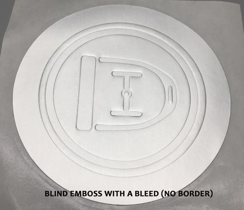 A border is generally added to custom embossed seals, unless otherwise specified. If you prefer not to have the border, it’s called a bleed even if it’s a blind emboss or it's the flat foil that extends to the cutline. Normally a bleed refers to ink running past the edge of the label, but custom embossed seals are a class of label unto themselves!