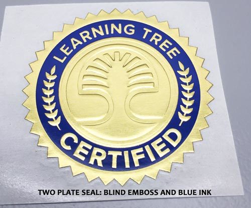 A blind embossed seal has no ink added to it; it is simply the foil imprinted with a design. Perhaps a better way to think about it is that a clear or colorless ink is being used rather than no ink, because there are instances when a seal has both a blind embossed portion and an inked portion. In these cases, for the purposes of quoting and production, it qualifies as a two ink plate seal.