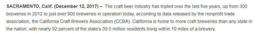 According to The Growler, a well-circulated craft beer publication in BC, there are currently 172 + craft breweries operating in British Columbia alone, twenty-two of which opened just last year in 2018. This is mere foam, of course, to the scene in California where in 2017 the California Craft Brewers Association stated the following: