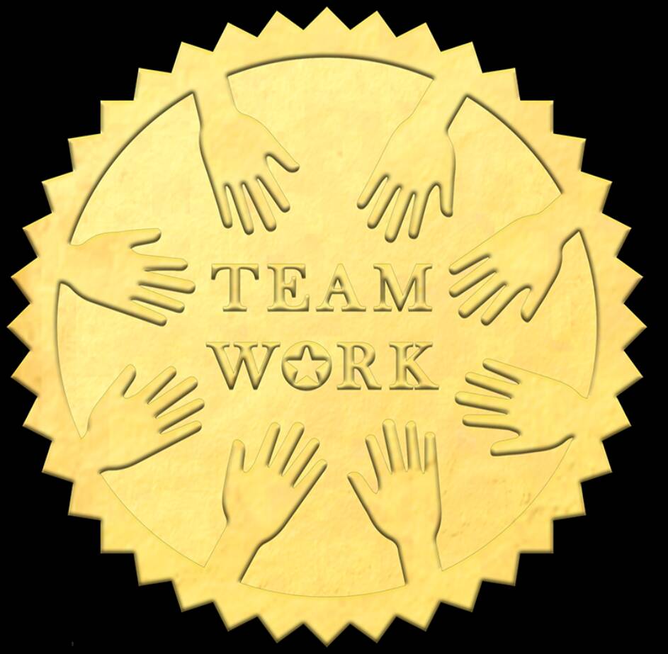 Highlight a job well done with a GOLD foil embossed Team Work certificate seal.