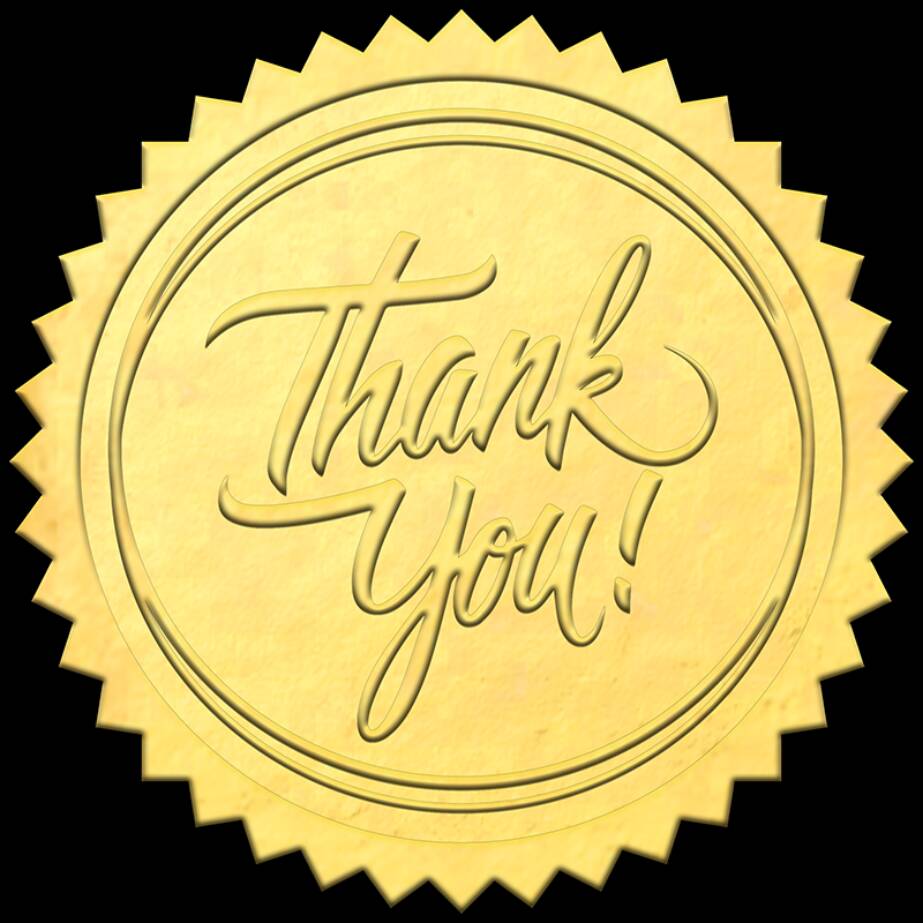 Add a classy touch to envelopes and stationary with these GOLD foil embossed Thank You Seals.